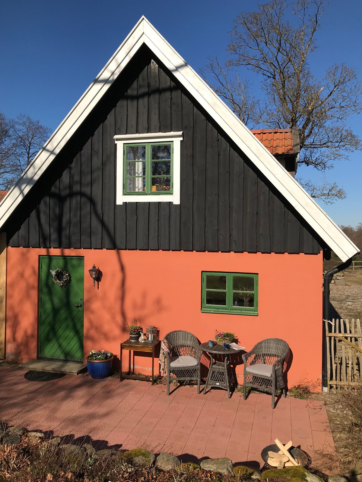 Välkommen till denna mysiga lantidyll där man omfamnas av hästhagar. Lugnet. Tystnaden. Skönheten från de omgivande skogarna. Här kommer man nära både djur och fantastisk natur. På gården finns hästar, katter, höns och en liten sällskaplig hund. Bortom naturbeteshagarna finns de vilda djuren. Dock inga björnar eller vargar :-) Lyxen ligger i miljön. Det lilla huset är utrustat för självhushåll, men vi erbjuder frukostkorg och andra förnödenheter på begäran. Meddela gärna önskemål i god tid.