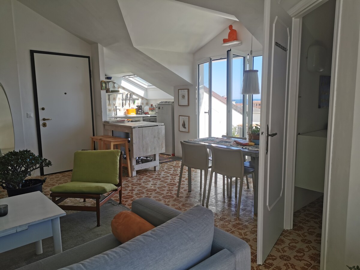 Fermati qui se non stai cercando la solita monotona casa vacanza! :) Un piacevole mix tra lo stile nordico e la luce ed i colori mediterranei: questo sarà per voi il primo impatto con lil vostro alloggio a Riva Ligure, in un appartamento mansardato posto al terzo piano di una palazzina degli anni 80. Vista mare, spiagge a 300 m, posto auto assegnato nel cortile privato. Pista ciclabile a 50 m. Possibilità di parcheggiare le biciclette.