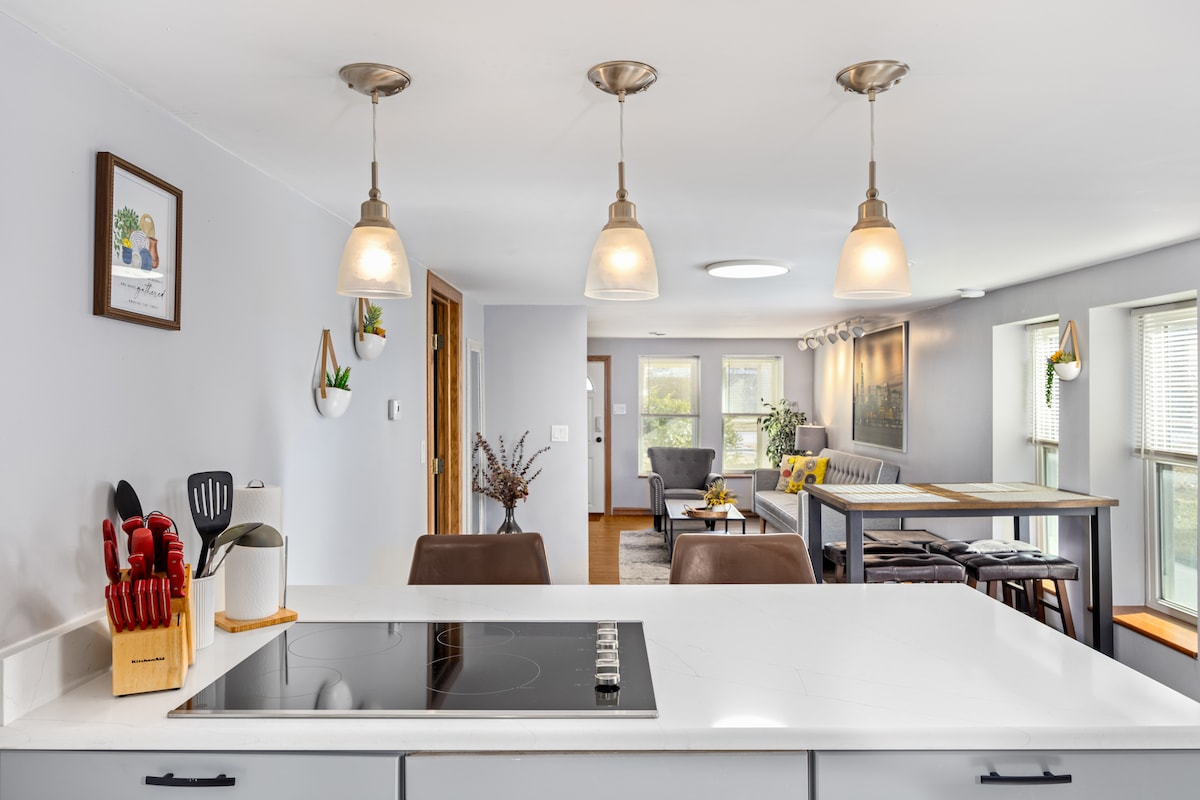 Welcome to your beautiful 3 bedroom home-away-from-home! From the Insta-worthy forest room to the cozy fireplace reading nook to the modern ice crusher in the kitchen, we've put so much thought into this home that we're sure you won't ever want to leave. Welcoming and newly updated, this unit is close to restaurants, shopping, the best of Frank Lloyd Wright, and the train to the city.