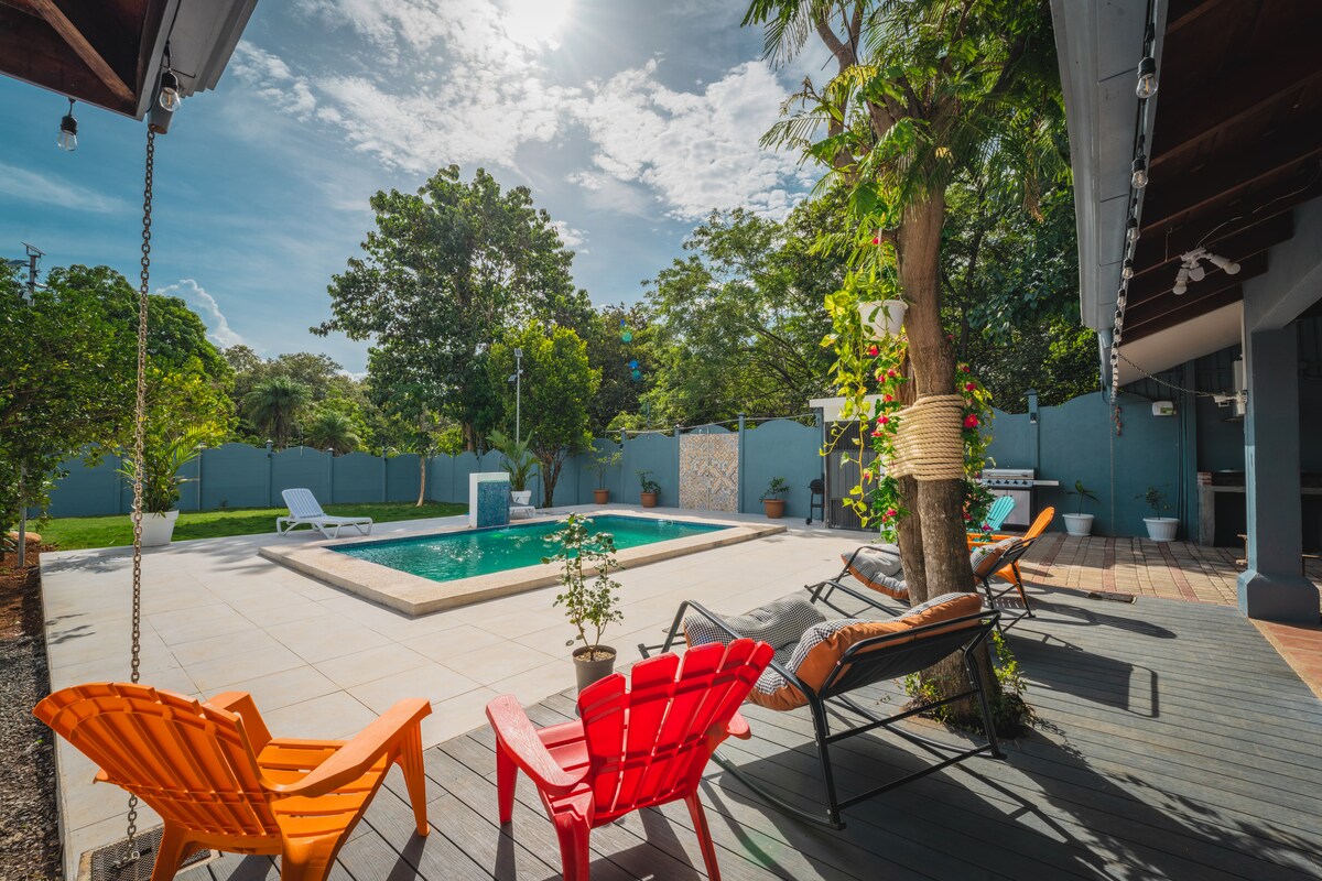 Acogedora casa de 2 habitaciones, a 4 min del centro de Liberia, a 3 min de Walmart y a 15 min del aeropuerto internacional Guanacaste y del Adventure Park, en auto. Wifi de 300 MB! La estancia es muy segura, ubicada en una calle sin salida, rodeada de árboles, podrás observar todo tipo de aves, ardillas, iguanas y hasta monos. Un lugar agradable, lleno de paz, pet friendly y a su vez muy céntrico. Ideal para turistas, familias pequeñas, nómadas digitales, amigos y trabajadores de paso.