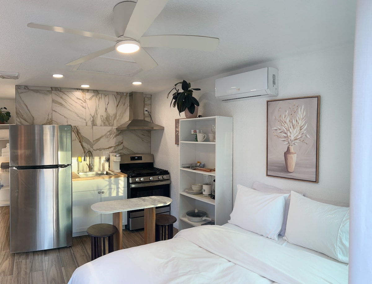 Suite privada, tranquila y cómoda | Estacionamiento gratuito | Acceso sin restricción de horario | Cocina Relájate y siéntete como en casa en esta tranquila suite privada, cuidadosamente diseñada para una estancia cómoda y sin preocupaciones. Perfecto para viajeros solos, parejas, viajes de negocios o estancias cortas y prolongadas. 🏡 Por qué a los huéspedes les encanta esta suite ✔Suite 100 % privada ✔Espacio impecablemente limpio y bien organizado ✔ Cómoda cama tamaño queen ajustable para un sueño reparador. ✔Ubicación conveniente cerca de hospitales, universidades, tiendas, restaurantes y fwy