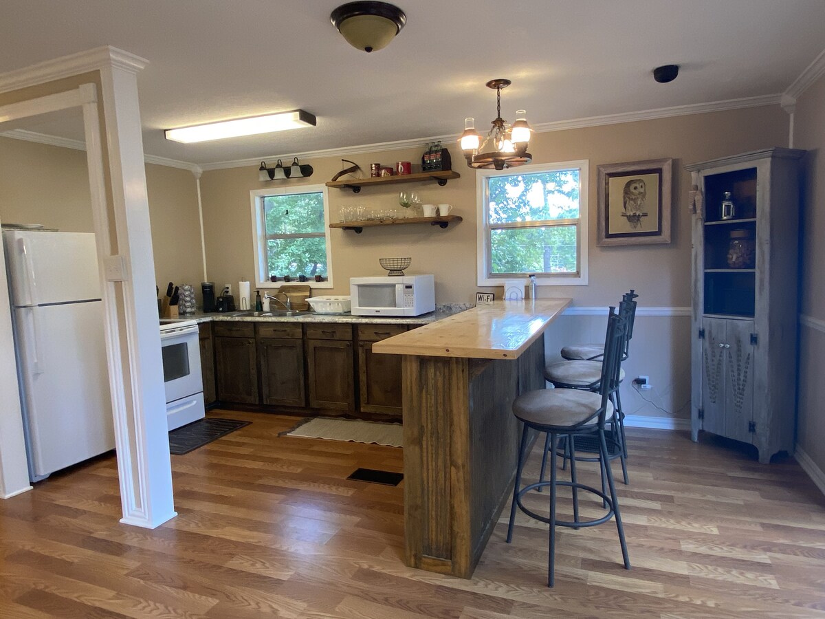 Entorno rural tranquilo a solo 3 millas del centro de Huntsville, a 4,5 millas de SHSU y a 1 milla de la feria del condado de Walker. El hogar es un lugar perfecto para venir a relajarse después de un largo día de trabajo o un día de compras en la plaza. Estamos rodeados de árboles y a los ciervos les encanta venir de visita por la mañana y por la noche. Las habitaciones están configuradas como un hotel con nevera de tamaño completo, microondas y cafetera. El espacio tiene su propia entrada y los huéspedes pueden ir y venir según sea necesario sin molestar a los propietarios.
