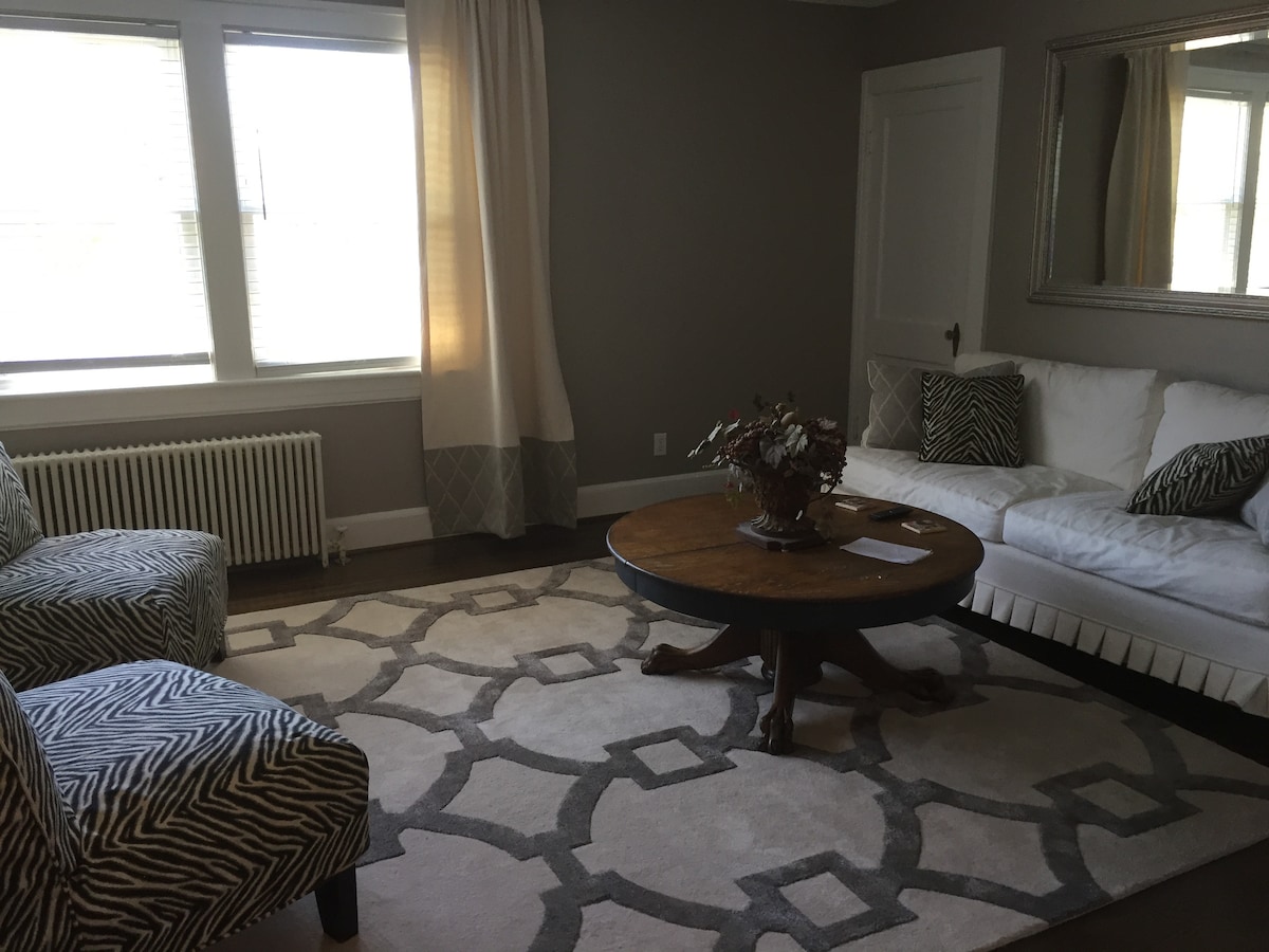 Situado enfrente de una popular panadería y bistró y a poca distancia del centro de la ciudad, estarás cerca de todo mientras podrás disfrutar de un edificio histórico que destaca de otros en la zona con su arquitectura e historia únicas. Hay dos dormitorios de buen tamaño, una cocina bien equipada y espacios de vida y de trabajo agradables. Además, tendrás acceso a un espacio compartido y patio trasero que incluye varias opciones de recreación, como una chimenea, bañera de hidromasaje y sauna.