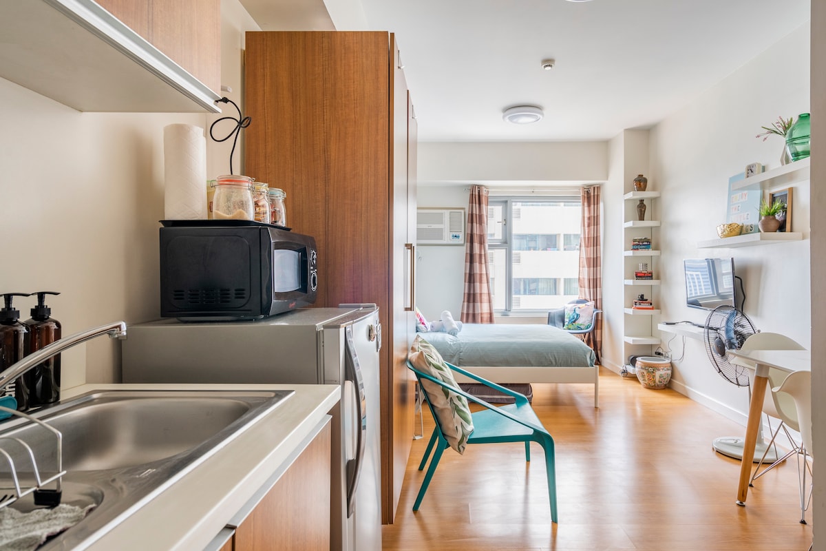 Book this luxury stay at the center of BGC. Everything is just a few steps away. Prime offices and high end malls surround The Infinity. Experience a cosmopolitan getaway. Explore unique food and shopping finds. Party the night away at premier bars right within the area. Unwind in our mid-century modern bedroom unit with a queen sized bed and a 50” smart tv. Enjoy your fave movie on a 65” smart tv in the living area. 400 MBPS internet provided for your work from home or surfing.