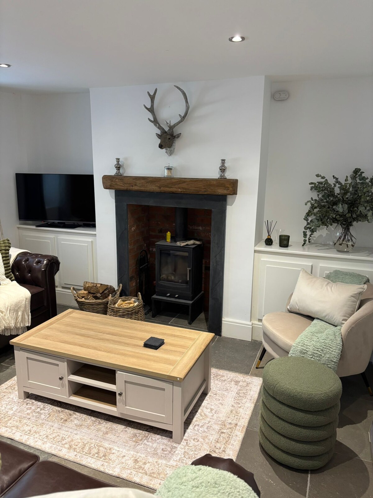 El anexo es una propiedad independiente situada justo enfrente de nuestra casa familiar. Todos los accesorios y equipamientos se han diseñado cuidadosamente para garantizar que tengas una estadía cómoda. Hay un dormitorio doble grande con una lujosa cama tamaño king, una sala de estar abierta con TV inteligente, estufa de leña para noches acogedoras y calefacción eléctrica. El baño tiene una ducha eléctrica a ras de suelo de gran tamaño. La propiedad es apta para un máximo de dos adultos (no es apta para niños/niños pequeños debido al gran estanque que hay cerca).