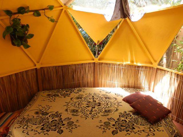 Acogedor domo para dos o tres personas en el jardín más bello de Barra de Valizas! Rustico y delicado ambiente con cama doble y un tatami puff que funciona de cama individual. Baño en modo seco, privado. ducha caliente a gas, cocina amplia y completa compartidos. Lugar hecho y pensado a la medida de quien quiera disfrutar sencillamente Hay varios espacios para fogones y opción de desayuno y almuerzo. además de la belleza de nuestro jardín.Y todo a 100 mts del mar y lo mismo del centro !