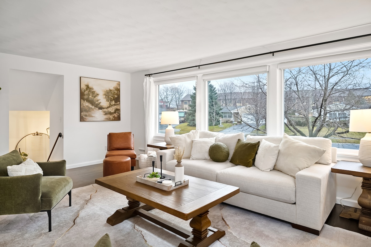 ✔️ Lujoso ✔️ Grande - 2500 pies cuadrados ✔️ 2 salas de estar grandes Mesa de ✔️ billar Juegos de✔️ mesa ✔️ Patio trasero con chimenea, mesa de comedor y sillas ✔️ Barrio tranquilo ✔️ Cocina: cápsulas Starbucks Keurig gratuitas ✔️ Gimnasio: cinta de correr, bicicleta estática, barra de dominadas, barra de fondos, banco, mancuernas, esterilla de yoga. ✔️ Cerca del Hospital General de Rochester. ✔️ Cerca de muchos restaurantes y tiendas.