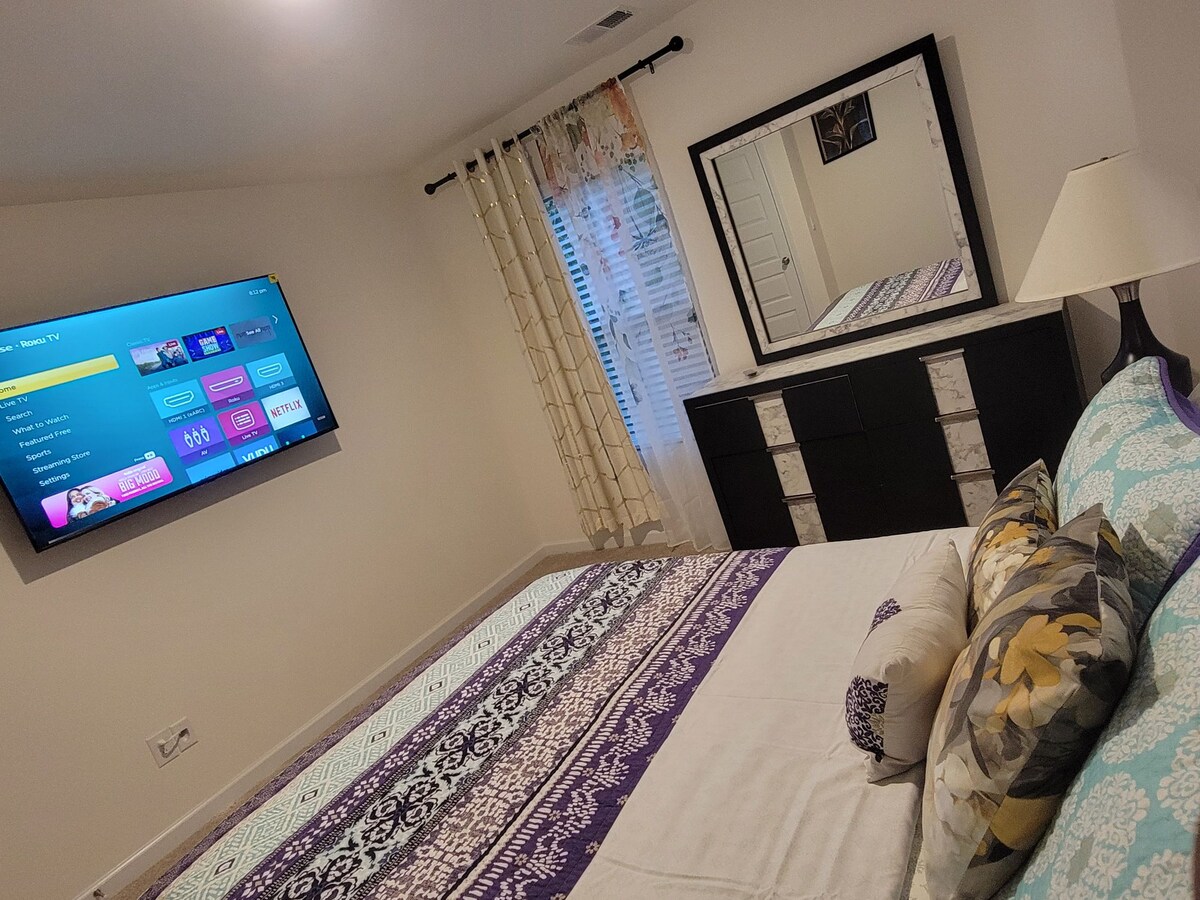 Disfruta de una nueva (construida en 2022) y limpia casa adosada de 1556 pies cuadrados. Barrio tranquilo, seguro (seguridad ADT), aparcamiento gratuito (2 vehículos), cocina totalmente surtida y equipada, internet de alta velocidad de 1 GB, 3 televisores inteligentes, parrilla, filtro de agua (agua potable alcalina remineralizada, limpia, pura y saludable) y filtro TrueAir. Cuenta con 3 dormitorios, 2,5 baños, vestidor, lavadora y secadora, estufa/horno/horno microondas y lavavajillas. A solo 13 minutos en coche del parque Stone Mountain y del acuario SeaQuest.