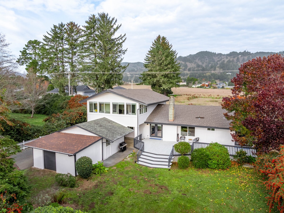Nuestra acogedora casa de huéspedes detrás de la casa de nuestra familia cuenta con un encantador estilo de granja moderno, ropa de cama cómoda (capacidad para 4 personas), una cocina pequeña bien surtida y un cargador de nivel 1 para nuestros huéspedes de vehículos eléctricos. Ubicado cerca de restaurantes/tiendas de Brookings, a poca distancia en coche de impresionantes playas, senderos, el río Chetco, bosques de secuoyas y a poca distancia a pie del parque Azalea (con 2 parques infantiles, hermosos jardines/senderos, campo de golf de disco, campos de pelota/canchas, conciertos gratuitos en verano y espectáculos de luces populares en invierno).