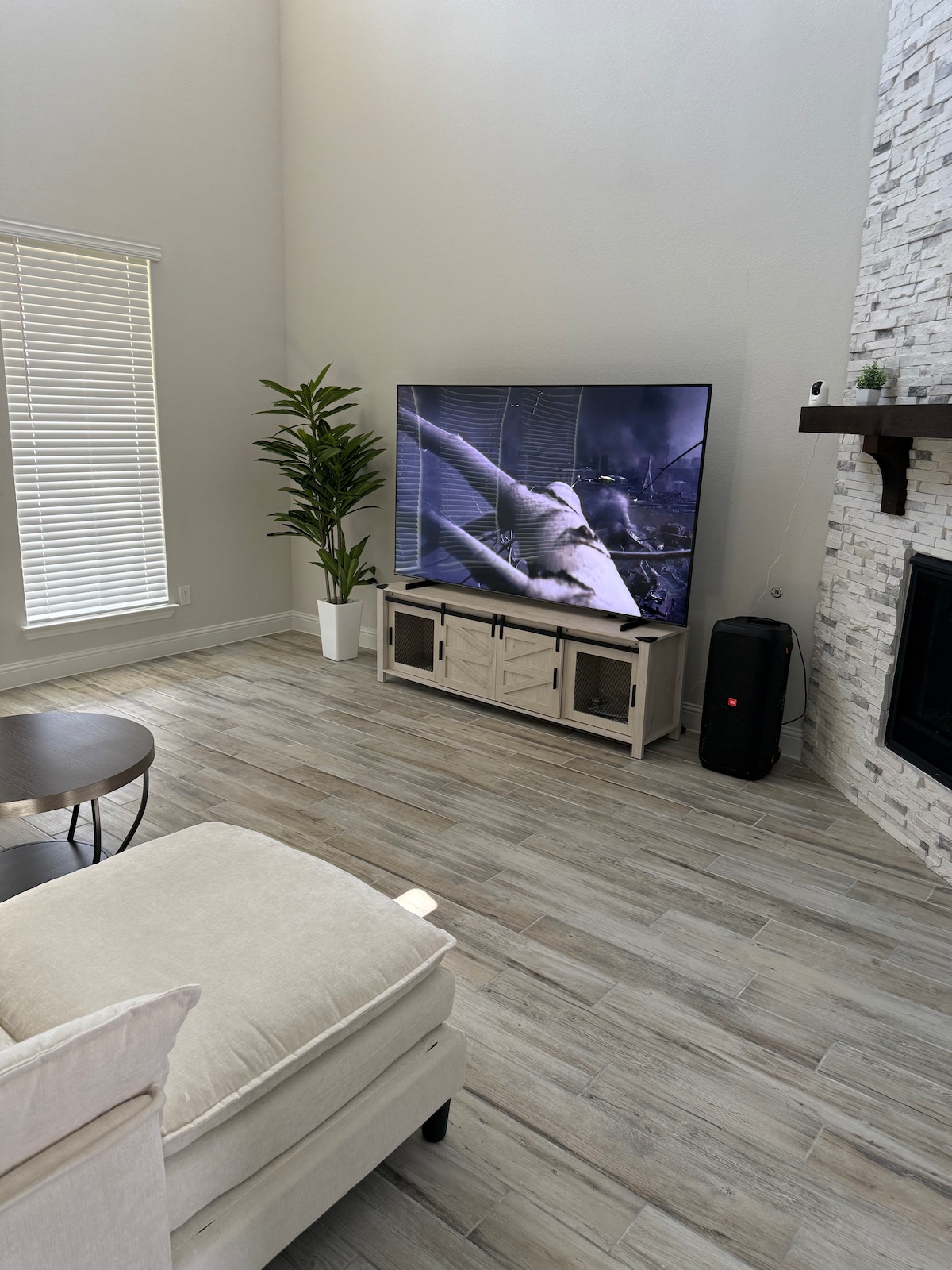 Relájate con toda la familia en este alojamiento tranquilo. Los 4 dormitorios son grandes y espaciosos. Cada uno tiene un televisor Roku. Sala de juegos con mesa de billar, televisor Roku de 65 pulgadas, tablero de dardos y asientos. Cocina y comedor bien equipados en la cocina, el comedor y el patio. La piscina está disponible, pero no climatizada. El spa no tiene calor. La piscina se limpia semanalmente el martes. Hay una red de piscina disponible para eliminar hojas y otros escombros. Los remolques, barcos, casas rodantes no se pueden estacionar en la propiedad.