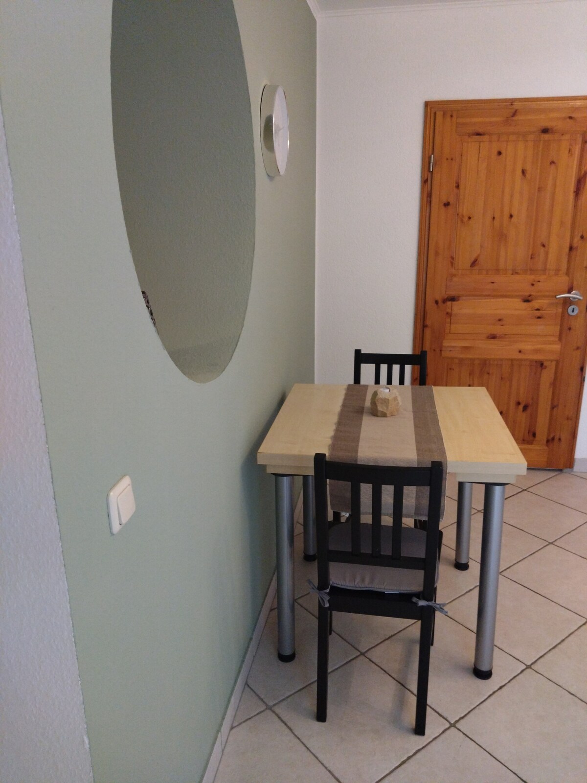 El apartamento está en el primer piso, al que se accede por una amplia escalera. Desde el apartamento hay una bonita vista a un parque. En el apartamento hay dos camas dobles de 140, una de las cuales es una litera. Por lo tanto, por ejemplo, pueden dormir dos adultos abajo y dos niños de 2 a 12 años arriba. Dado que el sitio web de Airbnb aún no tiene la función de indicar el número de niños, póngase en contacto con nosotros si es una familia para encontrar una solución común.