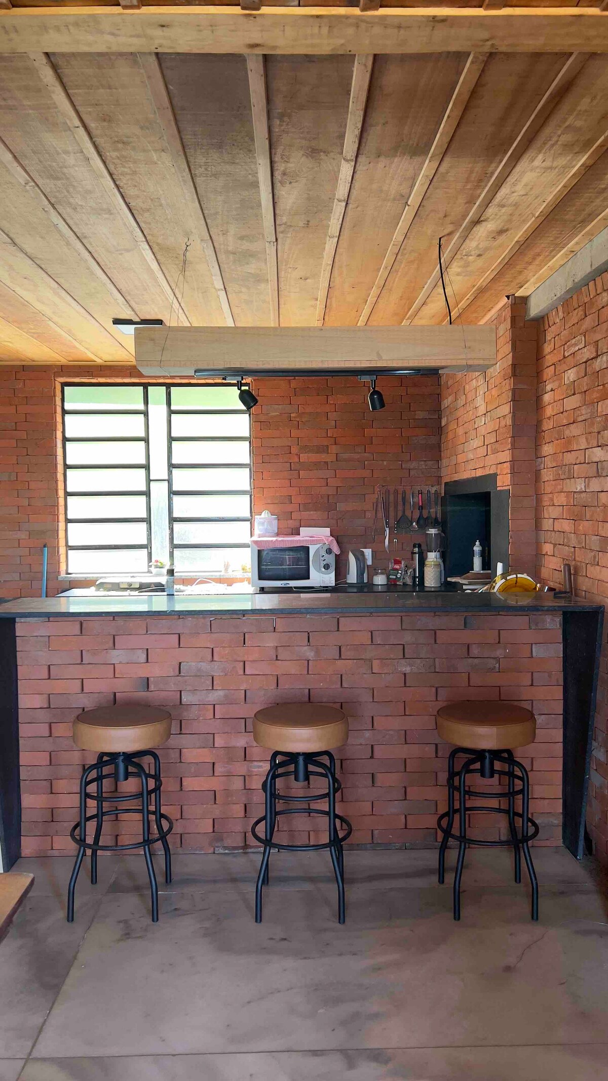 Relájate en este espacio tranquilo y elegante. Disfruta de un desayuno excelente Bañera Cada detalle del Sítio Santa Martha Chalet ha sido cuidadosamente pensado, desde la base firme hasta los elementos que hoy encantan los ojos y el corazón. Se proporcionará leña como cortesía. El chalet tiene un sistema generador de energía. Batas de baño y toallas Baños Cocina con estufa de dos quemadores, microondas, purificador de agua, freidora de aire, platos Bosque con bosque estacional Balanços Incendio en el piso