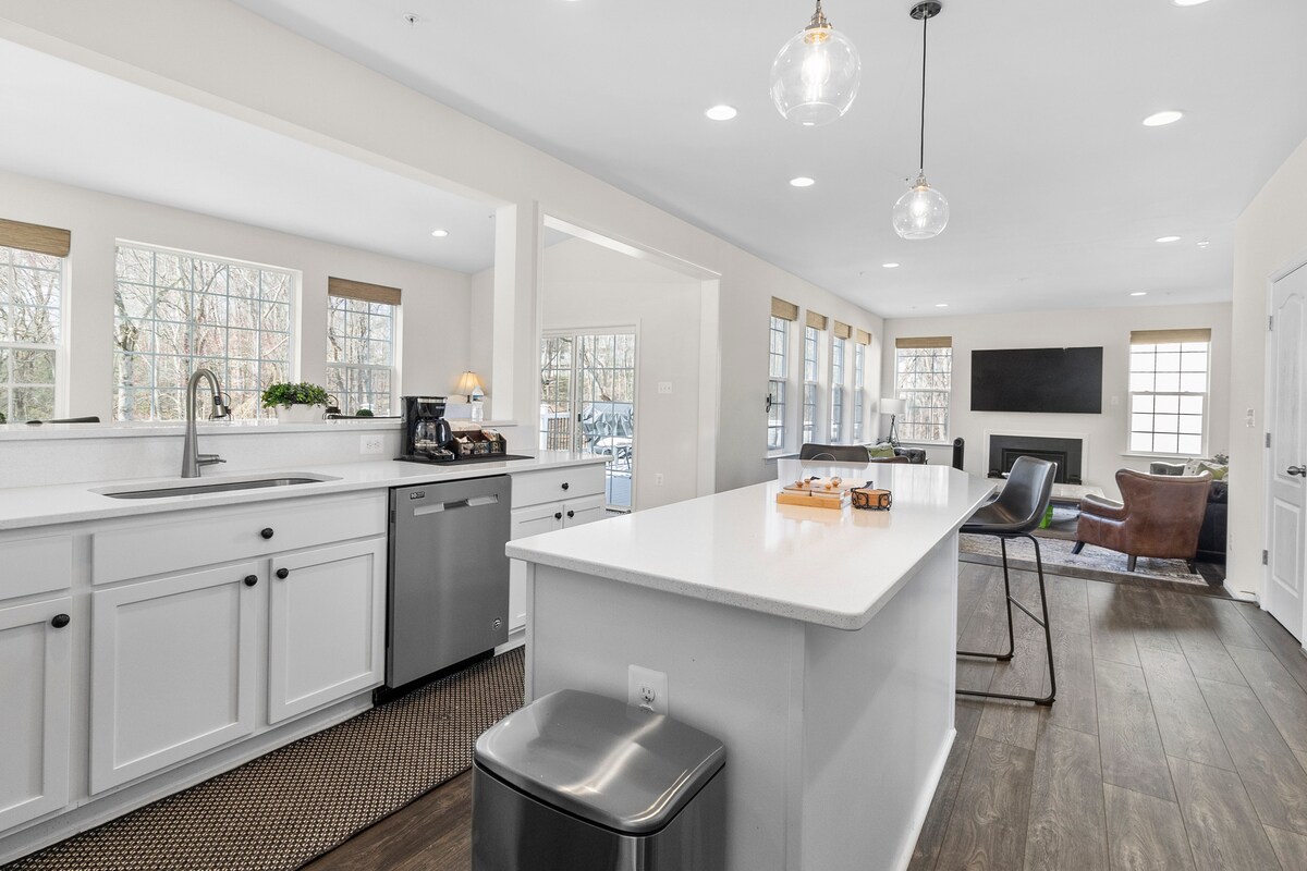 Despierta con el encantador sonido de los pájaros del parque arbolado justo detrás de este acogedor refugio. Disfruta del sillón reclinable eléctrico y del televisor inteligente de 65 pulgadas junto a la chimenea. Cocina abierta personalizada (sin horno), cómodo dormitorio tamaño queen, baño completo privado, lavandería y patio trasero cercado para una privacidad relajante. Perfecto para parejas o viajeros de negocios, a minutos de Kingstowne, Ft. Belvoir, National Harbor, Old Town Alexandria y Washington DC, con fácil acceso al metro y dos espacios de estacionamiento asignados.
