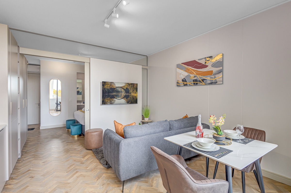 Apartamento de un dormitorio moderno, cálido y acogedor.
