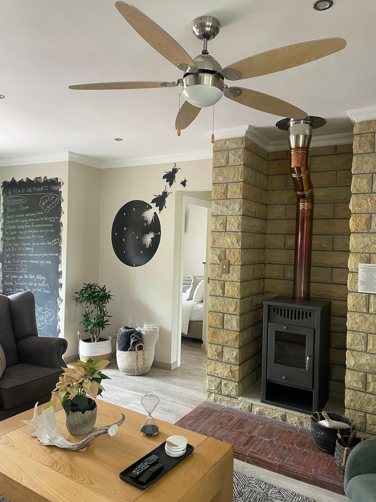Clarens House es una casa minimalista moderna, con características únicas, una amplia sala de estar de planta abierta y zonas al aire libre creativas y relajantes para disfrutar. La casa tiene capacidad para 4 personas en dos dormitorios con baño privado. La disposición es de dormitorio/baño de planta abierta arriba y baño cerrado abajo. A un minuto a pie de tiendas y restaurantes. Hay un braai interior que funciona como chimenea. Smart TV, DSTV y wifi. Los huéspedes adicionales o los niños supondrán un coste adicional.