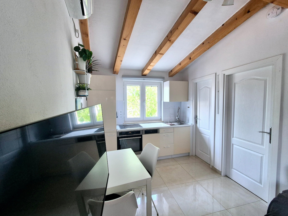 Casa de piedra tipo estudio para 2 personas. Tiene dormitorio, cocina, baño y balcón. Es una escapada ideal de la ciudad, también perfecta para atletas recreativos (bicicleta) Existe la posibilidad de almacenar equipos deportivos. El pueblo de Rovinj se encuentra cerca de la ciudad de Rovinj y está a pocos minutos en auto. En el pueblo es mejor hacer todo a pie. La distancia de la casa en minutos a pie es: 🛒 Tienda Valalta/ Studenac - 3 min 🍽️ Restaurante a 1 minuto 🏧 3 minutos