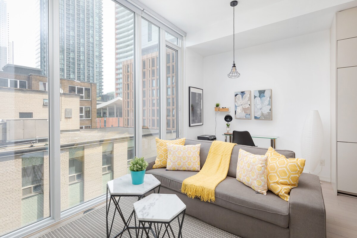***NO SE PERMITEN FIESTAS NI TONTERÍAS: LOS INFRACTORES SERÁN MULTADOS CON HASTA 500 $ Y DESALOJADOS*** Un apartamento recién amueblado situado en el corazón del centro de Toronto que garantiza maximizar tu estancia con todo muy cerca. Este apartamento de 750 pies cuadrados tiene techos de 9 pies, suelos de madera, wifi de alta velocidad, televisión por cable, lavadora/secadora y servicios básicos disponibles.