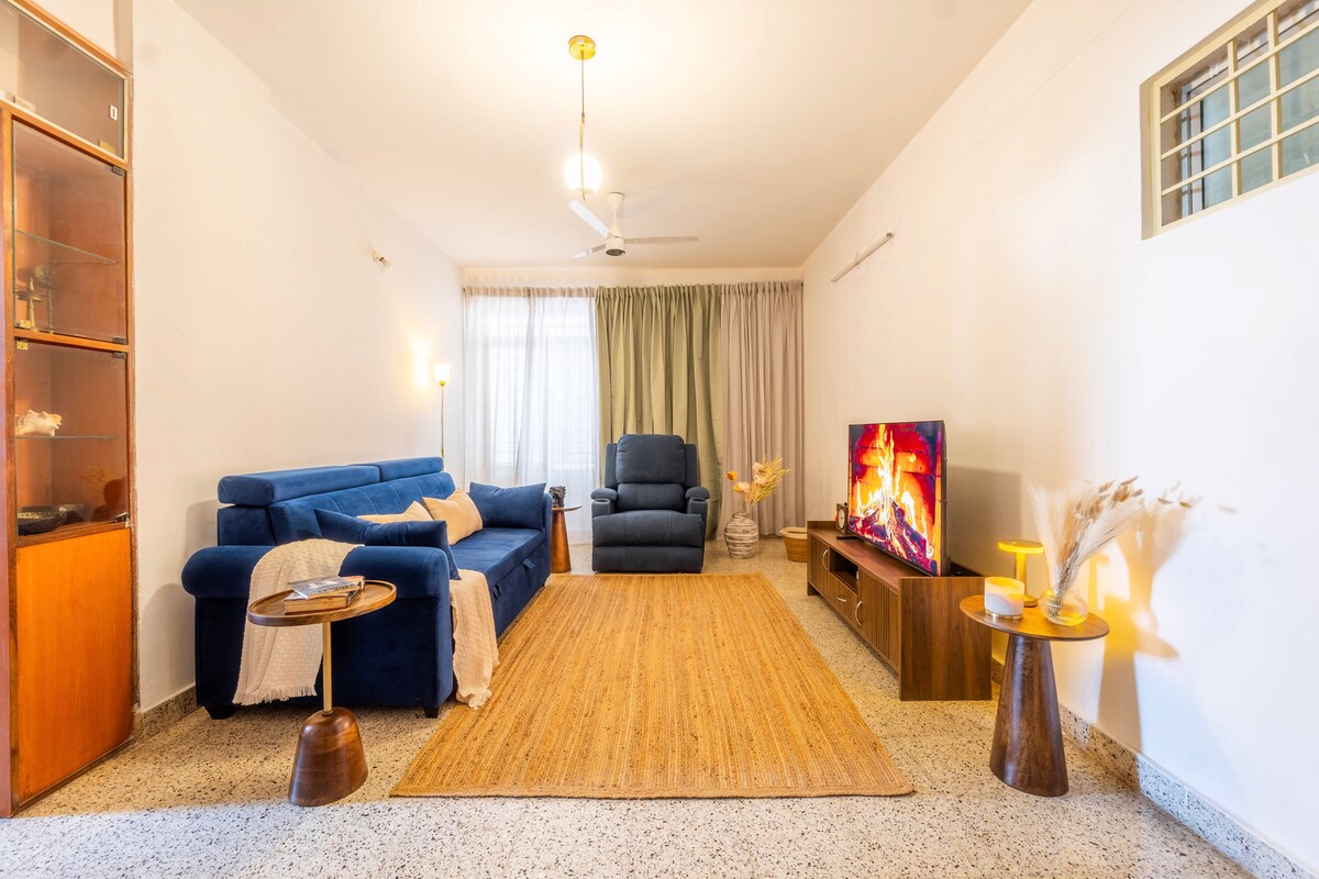 Situado en el corazón de BTM Layout se encuentra este 2BHK elegantemente diseñado solo para ti. ¡Qué te encantaría del Jardín Botánico en Jampa Square, BTM Layout! -> Dormitorio principal + 1 dormitorio, cocina totalmente equipada y una amplia sala de estar con balcón con interiores cuidadosamente diseñados que capturan la esencia de Bengaluru. ->20 minutos en auto del popular HSR Layout, Electronic City, Bannerghatta Road y JP Nagar. -> ¡Wifi de alta velocidad, TV inteligente de 55 pulgadas, sábanas limpias todos los días!