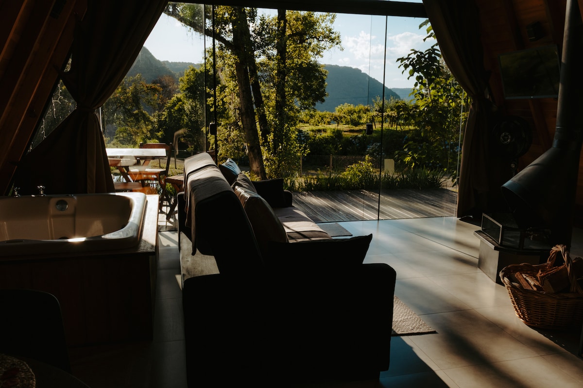 Gramado-RS-Cabaña con bañera, chimenea y vista-03-