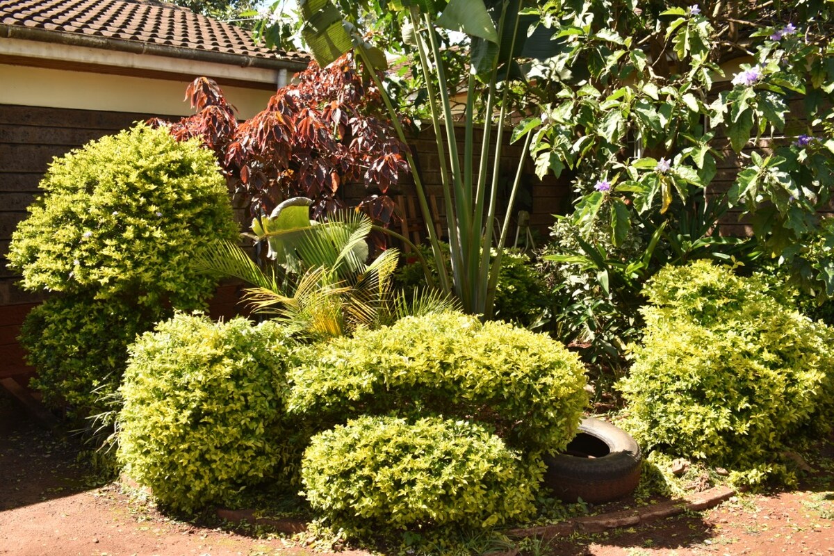 Un oasis perfecto para parejas o viajeros solitarios que buscan un refugio tranquilo del ajetreo de Nairobi, pero que necesitan un acceso cómodo a centros comerciales, aeropuertos y al centro de la ciudad. El acogedor apartamento tipo estudio está situado en la planta baja de una bonita casa familiar junto a la presa de Miotone y el bosque de Ngong Road, sección 1, justo al lado de Ngong Road y el Southern Bypass.