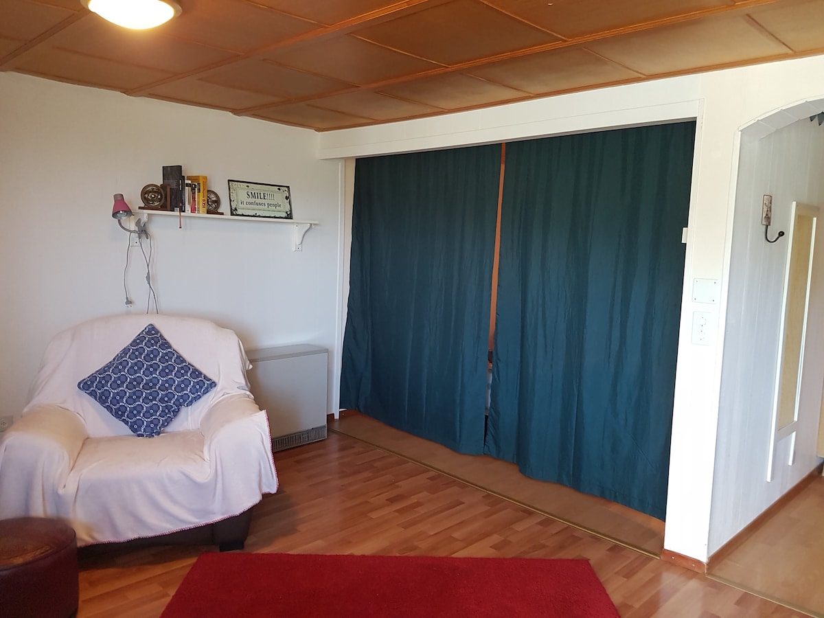 Estudio con vistas al valle y a las montañas. El acogedor apartamento amueblado se encuentra en la planta baja con acceso directo a la sala de estar y al aparcamiento. En el salón y dormitorio hay 2 armarios-cama, un sofá cama, la mesa de comedor con 4 sillas, una estantería con televisión y el armario de platos. Desde la sala de estar se tiene una magnífica vista de las montañas. Los propietarios viven en el sótano y también están allí cuando llegas.