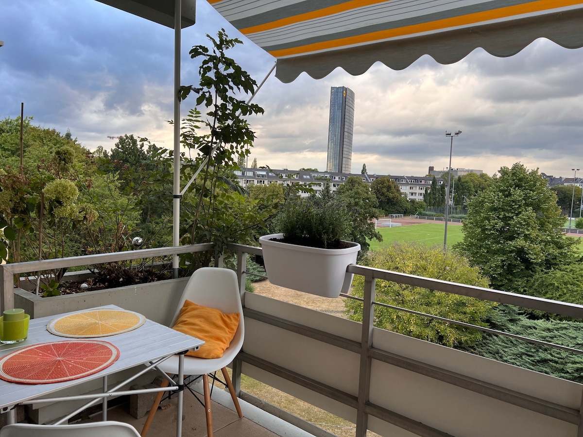 El departamento está en el centro ubicado en el centro de Düsseldorf -Friedrichstadt. El apartamento consta de un comedor y sala de estar con sofá cama (con colchón continuo), así como un dormitorio. - Televisión inteligente y balcón. En el dormitorio separado hay una gran cama doble y un amplio armario. También hay un escritorio grande y luminoso. Allí, la tercera persona también puede dormir en la cama supletoria. Las camas ya están hechas y las toallas están disponibles.