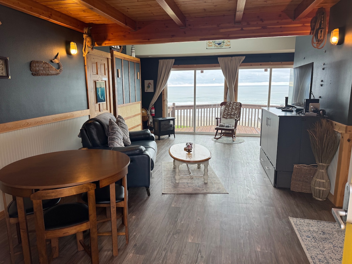 Ubicado en el último piso en la esquina del edificio, este condominio frente al mar ofrece impresionantes vistas panorámicas de Nye Beach, el faro de Yaquina Head y el resplandeciente océano Pacífico, creando el telón de fondo perfecto para un retiro romántico junto al mar. • 2 dormitorios tamaño king • Bañera de hidromasaje con vista al mar: relájate con estilo. • Cocina totalmente equipada. • Juegos y DVD para noches acogedoras. • Artículos para bebés incluidos • Roku TV + wifi • Vistas de piso a techo • 2 baños • Proceso de pago sencillo