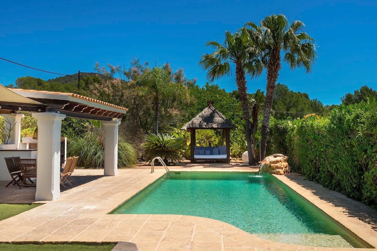 Villa privada boho con piscina y vista a Sant Antoni