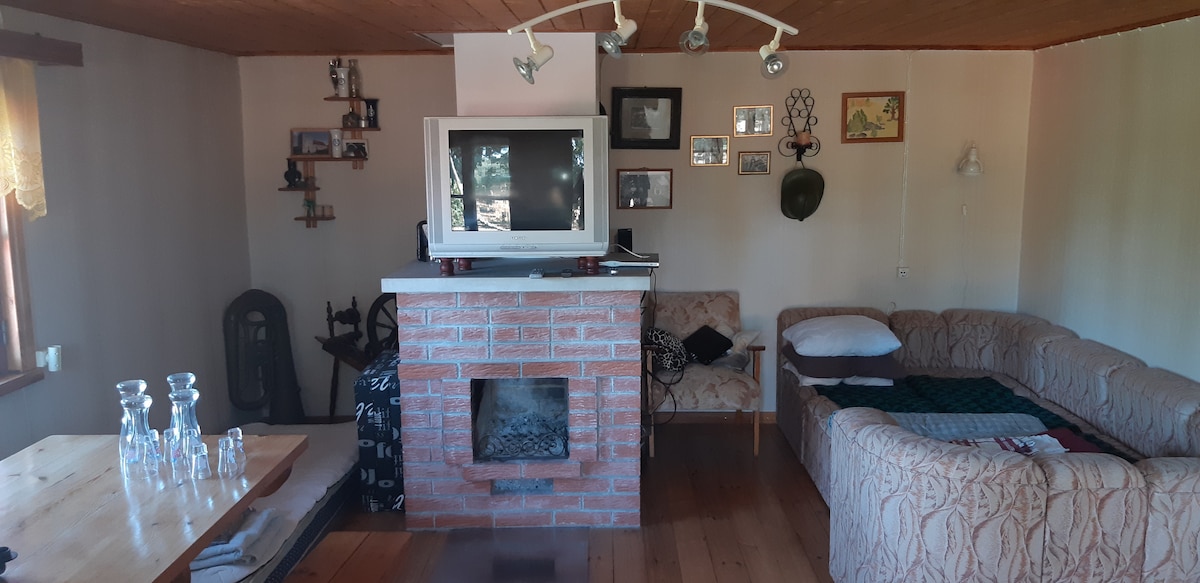 ¡Ven a pasar tus vacaciones en la naturaleza pura entre bosques de pinos donde el mar está a solo 5 minutos a pie! Te invitamos a una parte de la casa de 2 habitaciones, con una superficie total de unos 25 m2. La parte de la casa tiene una entrada independiente y consta de un vestíbulo de entrada, una cocina, un dormitorio y una sala de estar (sin ventana). Adecuado para 2 adultos y 2 niños. Hay una cama doble en el dormitorio, un sofá cama en la sala de estar. En la cocina hay todo lo necesario para cocinar, y también hay una zona de barbacoa. Parque infantil con tobogán y trampolín.