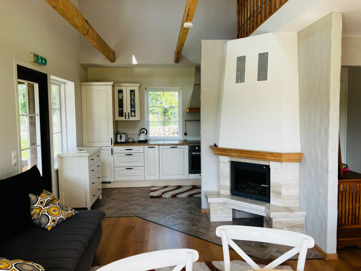 La casa del bosque de abetos está ubicada en medio de la hermosa naturaleza de Saaremaa. Tómate el tiempo para escuchar la vulina del arroyo o disfrutar de la vista del estanque y el bosque. La casa tiene todo lo que necesitas para unas vacaciones y capacidad para 9 personas (7 espacios en el segundo piso y 2 en la parte inferior). Hay 2 saunas y puedes saltar directamente al estanque para refrescarte desde la sauna. La sauna finlandesa está incluida en el precio. La sauna rusa tiene un pago adicional. Como servicios adicionales, ofrecemos pesca y viajes al mar, así como pescado ahumado y carne ahumada hecha por ti mismo si lo deseas. ¡De nada!