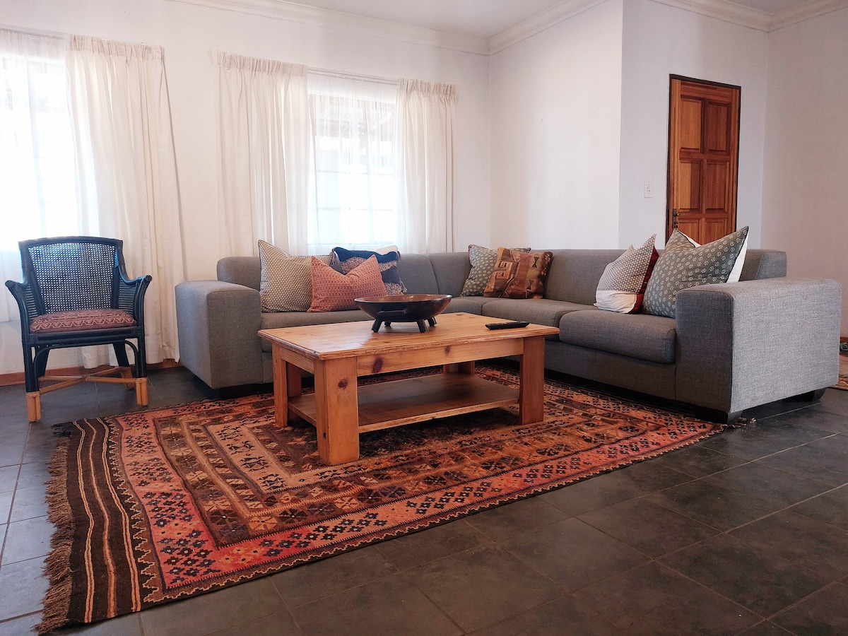 Load shedding equipped - inverter and battery system. This is a very comfortable, centrally-located family home with an open-plan living space leading out to a large deck, which overlooks a sparkling pool and treetops of the adjacent green belt. The house is best suited for up to 4 adults and their children (maximum 6 guests in total). Because the unit only has 2 ground floor bathrooms, we will not be able to accept booking requests for 6 adults. Strictly no noise and no parties allowed.