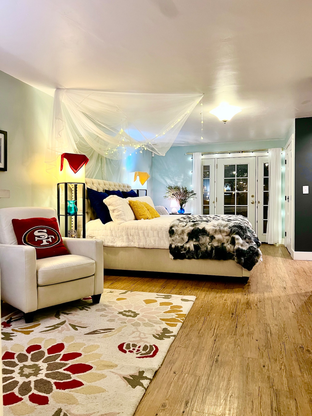 Espacio amueblado de lujo con cama tamaño king en el centro de Sacramento.