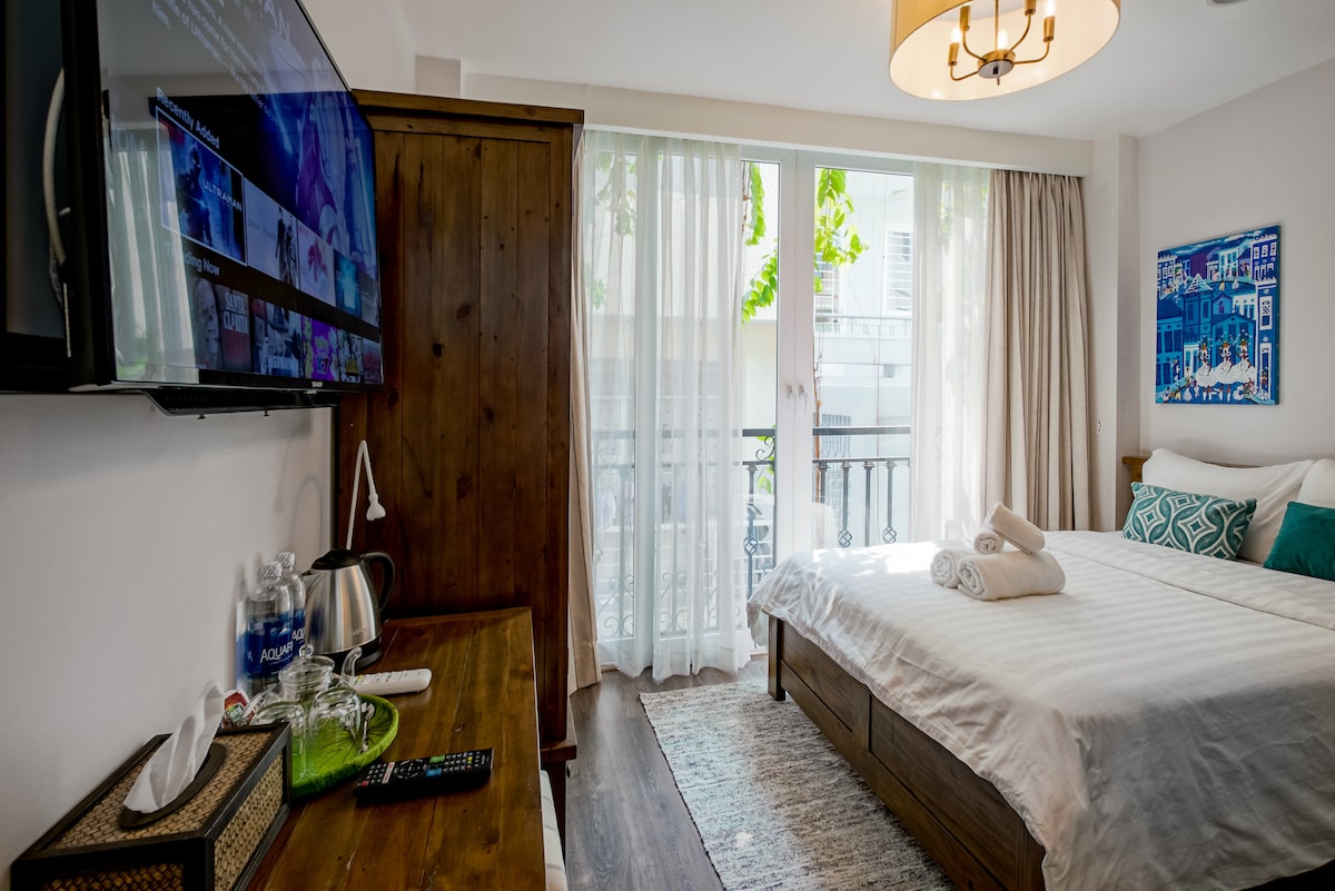 La habitación poética y tranquila en el tercer piso justo en el centro del Distrito 1, Ciudad Ho Chi Minh. La ciudad de Ho Chi Minh es decorada artísticamente por el propietario en la industria de la moda. La habitación tiene 30 m2 con un gran balcón con vistas al pequeño jardín verde en la planta baja justo enfrente de la hermosa boutique del propietario. La ubicación de una habitación privada en el tercer piso de una casa de 4 plantas (construida en 2019) en un callejón de seguridad de 3,5 metros de ancho junto al Departamento de Policía y a 20 metros de Tran Hung Dao Boulevard. La ubicación se encuentra a 700 metros de la calle Bui Vien, a 1,8 km del mercado de Ben Thanh y a 7,8 km del aeropuerto.