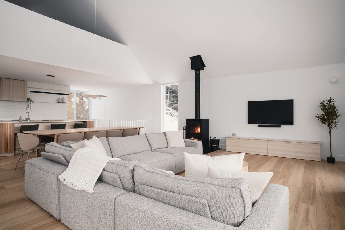 El Chalet Le Fidèle, situado en Lanaudière, una nueva construcción moderna, directamente al borde del agua, es un lugar para reducir la velocidad, desconectar y pasar tiempo de calidad con la familia y los amigos, en un lugar tranquilo e inspirador. Esta lujosa casa de inspiración escandinava, fue diseñada preservando la hermosa vista del lago que te deslumbrará a tu llegada. ¡El chalet está equipado con todo lo necesario para pasar una estancia inolvidable!
