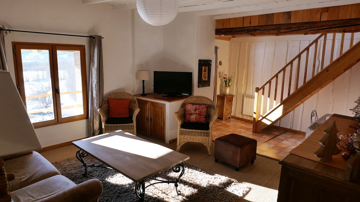 La Cabane puede alojar hasta 7 personas. La ropa de cama es un servicio opcional. El área del apartamento es de 55 m²+ 25 m² de terraza. Situado en una tumbona en la terraza orientada al sur, disfruta de la vista panorámica de las montañas nevadas de los Alpes del Sur, sin ningún tipo de vis-à-vis. Cuando hace frío afuera, caliéntate frente a la chimenea, sentado en una acogedora silla club: puedes imaginarte en un antiguo chalet de antaño... sin embargo, equipado con wifi, televisión y todo lo moderno.