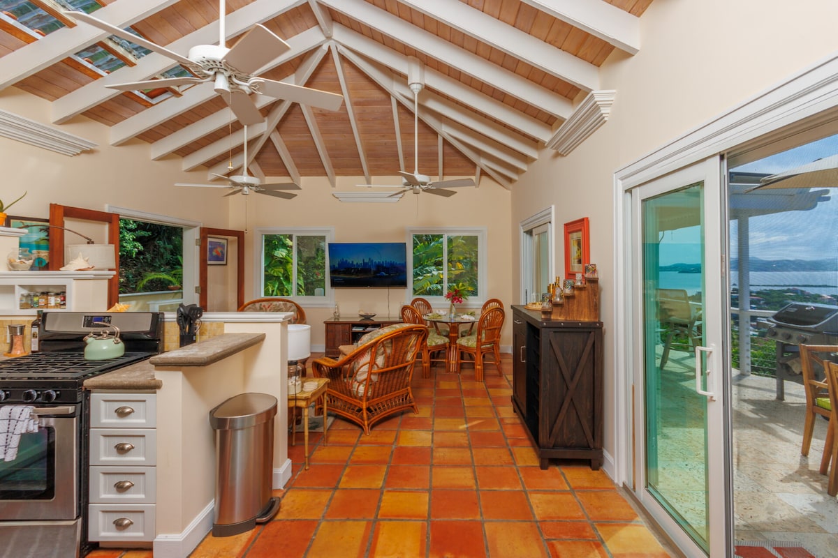 «La vista es incluso mejor que en las fotos». ¡Joy of Life Villa está cerca de playas de primera categoría, vida nocturna, vida silvestre y la buena vida! Disfruta de la brisa del viento alisio o del aire acondicionado en toda la villa. Wifi rápido y un escritorio para trabajar cómodamente desde casa. Somos una villa verde y totalmente solar, con mucha energía y sin cortes, comunes en otras villas. Casa de mampostería sólida, azulejos italianos. Excelente agua potable, ya que la lluvia se filtra con UV. ¡Kayaks y tablas de remo incluidos en la playa de Hansen! TODOS son bienvenidos.