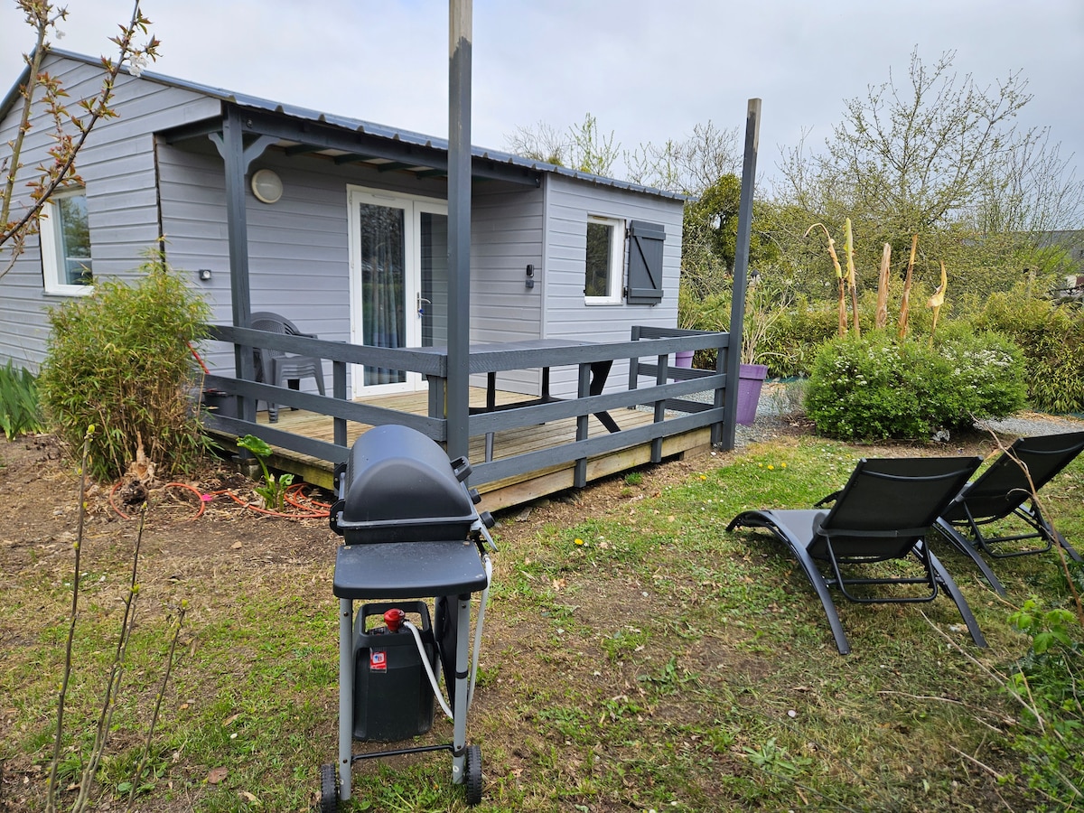La cabaña de Ninon es una casa de madera de 35 m2 , con capacidad para 3 personas (1 habitación con cama de 160x200 cm más un sofá cama en la sala de estar ,a 5 minutos en coche de las playas(5 km)y del centro de la ciudad (a 5 km)de Pornic. Entre el mar y el campo en un exuberante jardín, estacionamiento privado cerrado.. para una semana de vacaciones tranquila, en la costa de jade ..