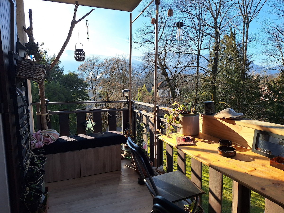 BIENVENIDOS a todos 🤗 ✨EL ESTUDIO✨ es completamente nuevo. Todo confort con una cuidada decoración 🔆 red WIFI 🛜 Una plaza de aparcamiento está disponible de forma gratuita. Gran jardín con barbacoa 🍖 y zona de picnic🧺/relajación 💆🏻 Bonitas vistas a la cadena de Belledonne 🏔 y Chartreuse. Cerca de estaciones de esquí❄️/ salida de senderismo🥾/ centros ecuestres🐎/ parapente🪂/ centros termales⛲️/ lagos 💦👙 Cf. La guía de Daï Entre Grenoble y Chambéry, a 7 minutos de CROLLES.