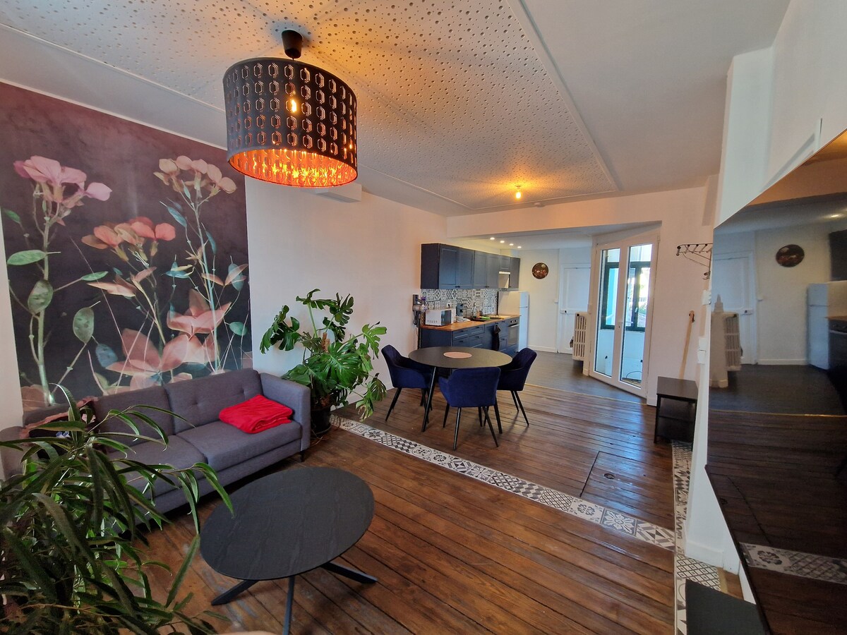 Apartamento de 50 m2, 2 dormitorios, uno doble y otro individual (borgne con techo de cristal) reformado. --- Clasificado como «Alojamiento de Turismo» por Gîtes de France (3 estrellas)--- ---> Situado a 2 minutos a pie de la estación de tren y a 10 minutos del centro de la ciudad. Aparcamiento gratuito. ¡Totalmente equipado y decorado con esmero para una estancia envolvente! ¡¡¡NUEVO !!!! colchón EMMA HYBRID II en habitación doble Llegadas y salidas con total flexibilidad gracias a la caja de llaves, ¡estaré a su disposición durante su estancia!