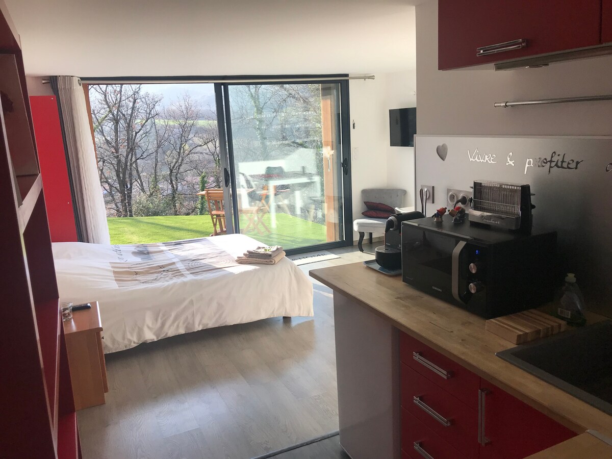 Estudio independiente, climatizado, con entrada y terraza privadas, ducha italiana y WC, en zona tranquila. Un recibimiento atento. El desayuno de bienvenida está incluido en el precio. Posibilidad de prepararse para comer, cocina integrada, nevera y horno microondas grill. Numerosos restaurantes entre 5 y 15 minutos. Solo este estudio está en alquiler. La piscina se comparte con nosotros, o incluso con nuestros amigos con total amabilidad. No hay animales sin correa en el terreno Propiedad sin vallar