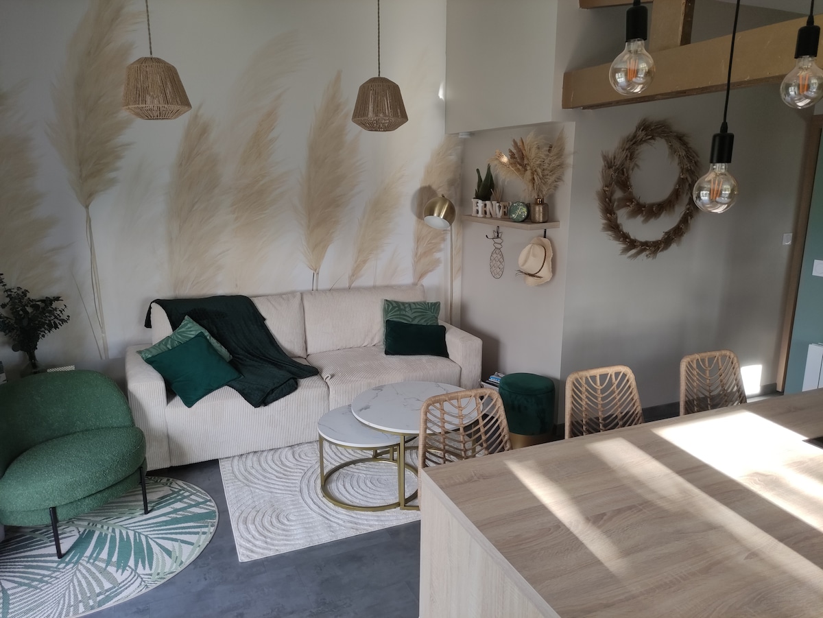 Vue panoramique sur l'étang pour cet appartement neuf de 50m2 très confortable décoration chaleureuse et soignée Ambiance bucolique et cosy Classé 4 étoiles ( classement officiel des hébergements touristiques ) proche des plages du Val André et Erquy À moins d’une heure de St Malo et Dinard départ du GR34 Golf à 1km , pêche, randonnées