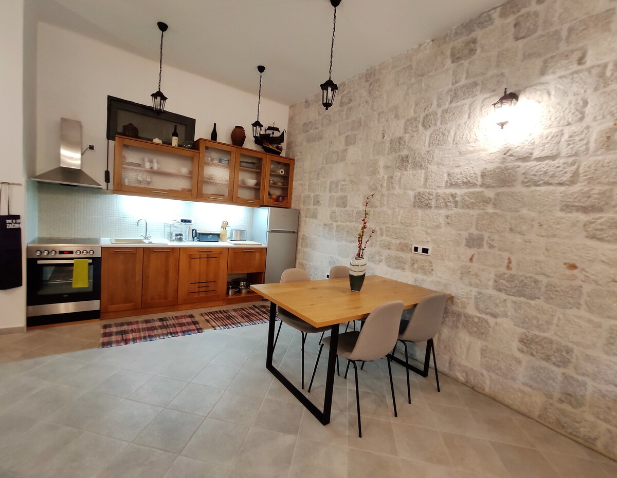 Apartamento histórico de tres dormitorios situado dentro de las murallas del casco antiguo de Kotor. El apartamento está situado en el segundo piso de un edificio histórico, una vez conocido como el famoso palacio lombardo del siglo XVII, rodeado de las plazas más bellas de la ciudad y a solo unos metros de la puerta principal de la ciudad, restaurantes, bares y tiendas de recuerdos. 3 dormitorios, 2 baños, enorme sala de estar con chimenea y balcón, comedor con cocina, con auténtico espíritu del casco antiguo de Kotor.
