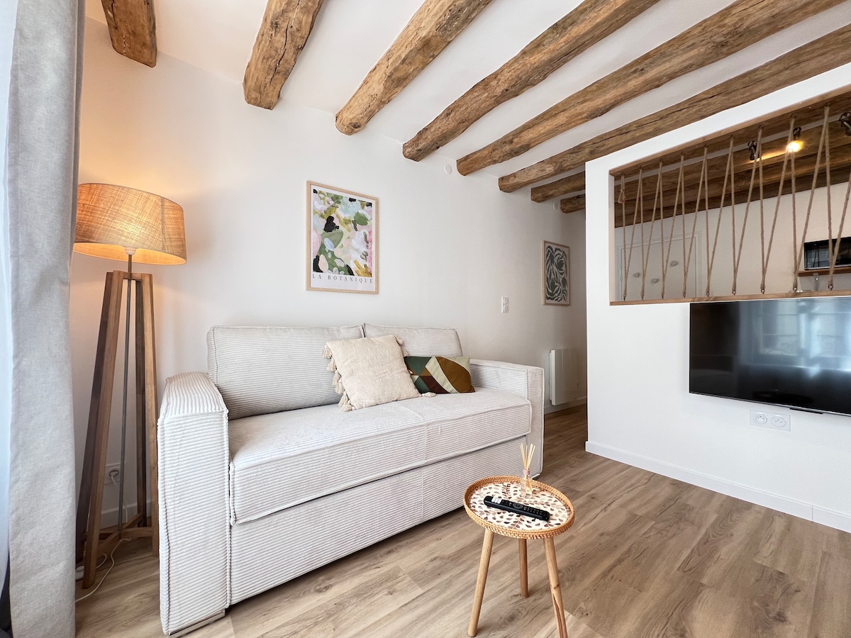 En el corazón de la ciudad, venga a disfrutar de su estancia en una casa conectada de 38 m², muy bien equipada, con facilidad de aparcamiento. Disfrute, en la planta baja, de un hermoso espacio de dormitorio con cama de 160. Disponga de un baño de estilo taller con ducha y sus artículos de aseo, así como una acogedora sala de estar abierta a una hermosa cocina bien equipada. También se puede acceder a un altillo con 2 camas de 90 por una bonita escalera de molinero original. ¡Idealmente situado, cerca de todo!