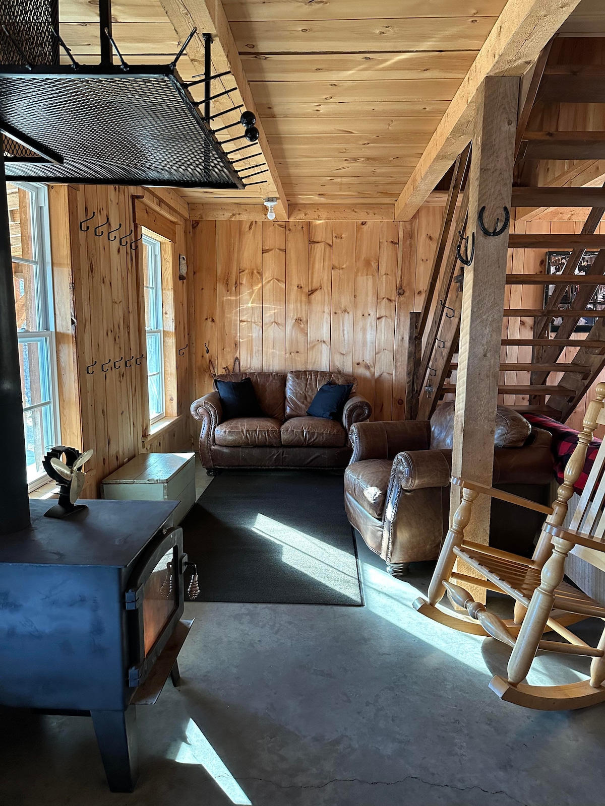 Hermoso loft cerca del centro de la ciudad. Ubicación ideal y equipado para estancias cortas y largas. Disfruta de acceso durante todo el año al jacuzzi, un garaje, estacionamiento al aire libre y una terraza con fogata. Entrada independiente con cerradura con teclado. Incluye una cocina completa, Wi-Fi, un televisor de 52 pulgadas con aplicaciones de streaming y una consola PS4. Carga de 30 A a través del adaptador NEMA 14-50P (debes traer tu adaptador de automóvil específico). Nota: el acceso es solo a través de escaleras. No hay rampa de accesibilidad.