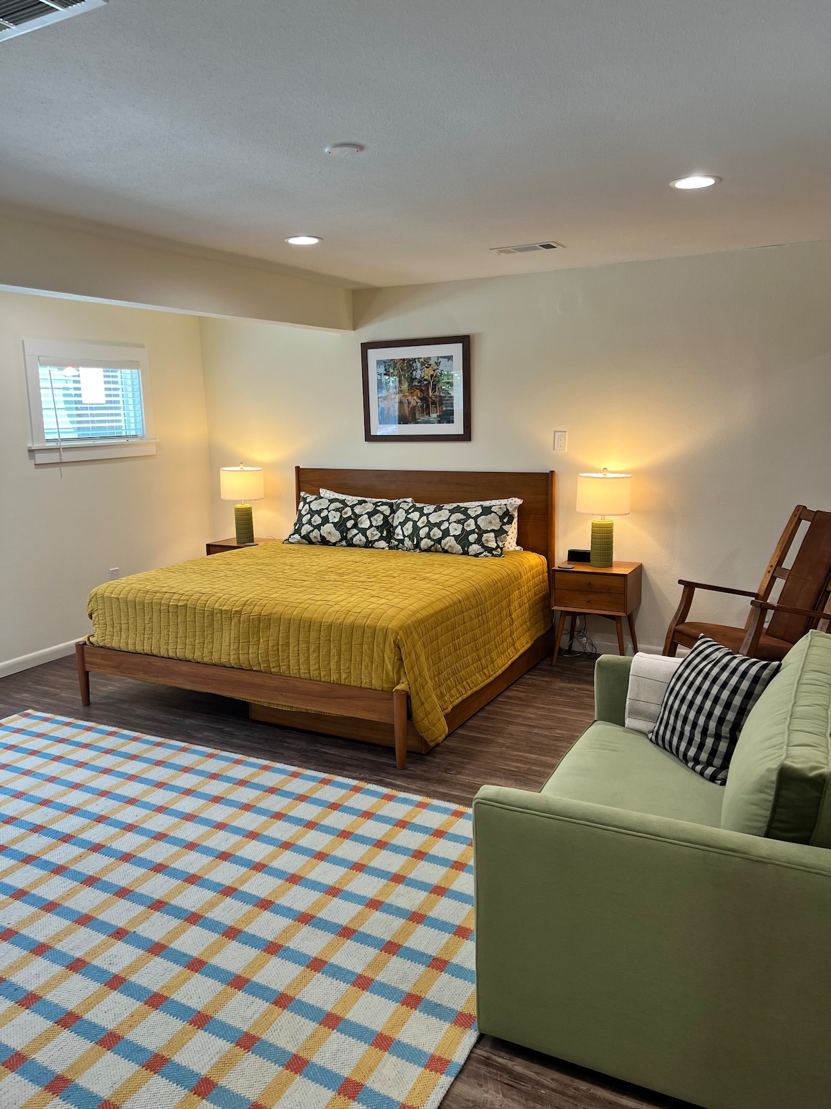 Experimenta la acogedora elegancia de nuestra unidad de 1 dormitorio, que cuenta con una cocina completa con encimeras de granito, una cama lujosa que promete noches de descanso y una encantadora sala de estar. Perfecto para personas que viajan solas o en pareja que buscan una escapada tranquila. Si solo conduces por la noche, está a 5 minutos en coche de la interestatal, lo que lo hace fácilmente accesible. Bienvenido a un pedazo de nuestro pasado con todas las comodidades de un hogar. ¡Tu refugio te espera!