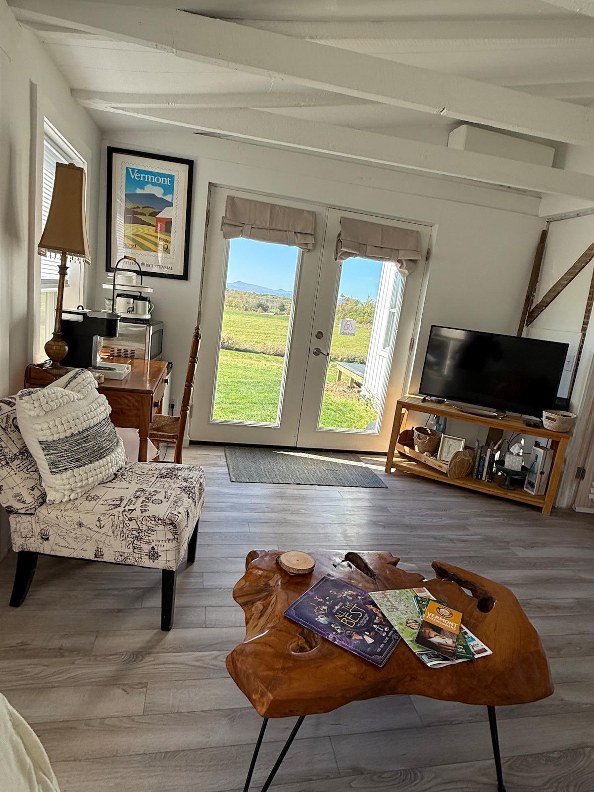 A converted barn attached to my house, this newly remodeled space is beautiful and inviting. Everything is new and high-end, yet it retains it's barn-y charm. For a couple who are looking to get away in the Adirondacks, this is a unique and appealing option. The house is 3.5 miles from the town of Essex, NY in the Champlain Valley. Gorgeous view of the Green Mountains to the east and farm land all around. The location is convenient to many attractions!