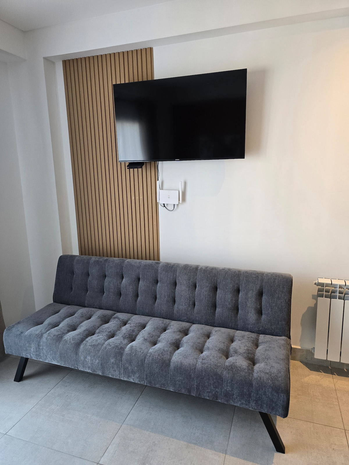 Disfruta de una estadía cómoda y práctica en este monoambiente para dos personas ubicado en el macrocentro de la ciudad de Salta. Situado en un edificio nuevo y moderno, cuenta con cerradura inteligente y acceso controlado, para que te sientas tranquilo y cómodo durante tu estadía. Este depeartamento tiene aire acondicionado, Tv de 43 y WIFI libre, cocina, nevera y horno. Tambien cuenta con toallas y ropa de cama.