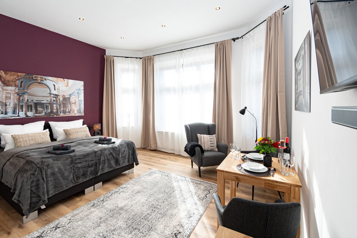 El departamento cautiva con un ambiente único y es un oasis elegante de bienestar en la ciudad. ✓ puede alojar hasta tres personas ✓ Cocina con vitrocerámica/estufa/cafetera (incluidas las almohadillas)/.. colchón doble de✓ alta calidad con ropa de cama ✓ Baño con las comodidades necesarias, como toallas y secador de pelo ✓ Internet con wifi, SmartTV para Netflix, adaptador de carga para teléfono celular ✓ Buena conexión con el transporte público ✓ El centro de la ciudad está a pocos pasos o en tren en pocos minutos.