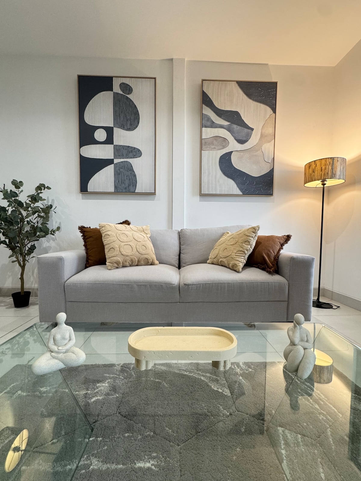 Apartamento moderno en ubicación exclusiva y estratégica en Guayaquil. A solo 5 minutos del Aeropuerto Internacional José Joaquín de Olmedo y del Mall del Sol, rodeado de los mejores restaurantes, cafés y zonas comerciales de la ciudad. Diseñado para brindar máximo confort y privacidad, el apartamento cuenta con: Aire acondicionado en todas las áreas y en cada habitación Cada dormitorio con su baño privado Baño de visitas adicional Sofá cama cómodo, ideal para huéspedes extra Espacios modernos
