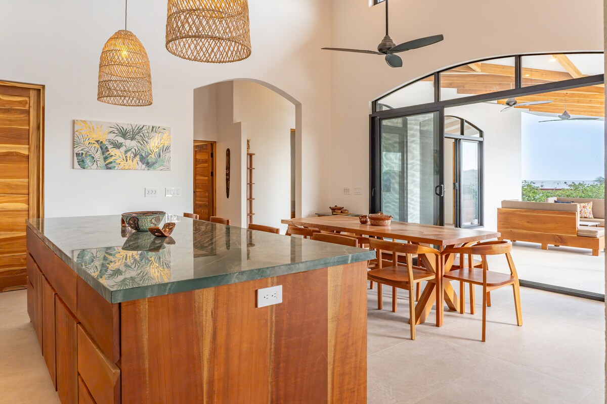Un hallazgo raro que combina impresionantes vistas al mar y a poca distancia a pie de la playa y del centro de Samara. Experimenta la magia de ver monos jugar en los árboles desde la tranquila piscina infinita. Conviértete en uno con la naturaleza desde la terraza a la sombra donde puedes ver el cambio de las mareas y la diversidad del bosque costarricense que te rodea. Continuarás disfrutando de vistas ilimitadas desde el espacio interior que se completa con una moderna cocina y sala de estar y tres dormitorios con aire acondicionado.